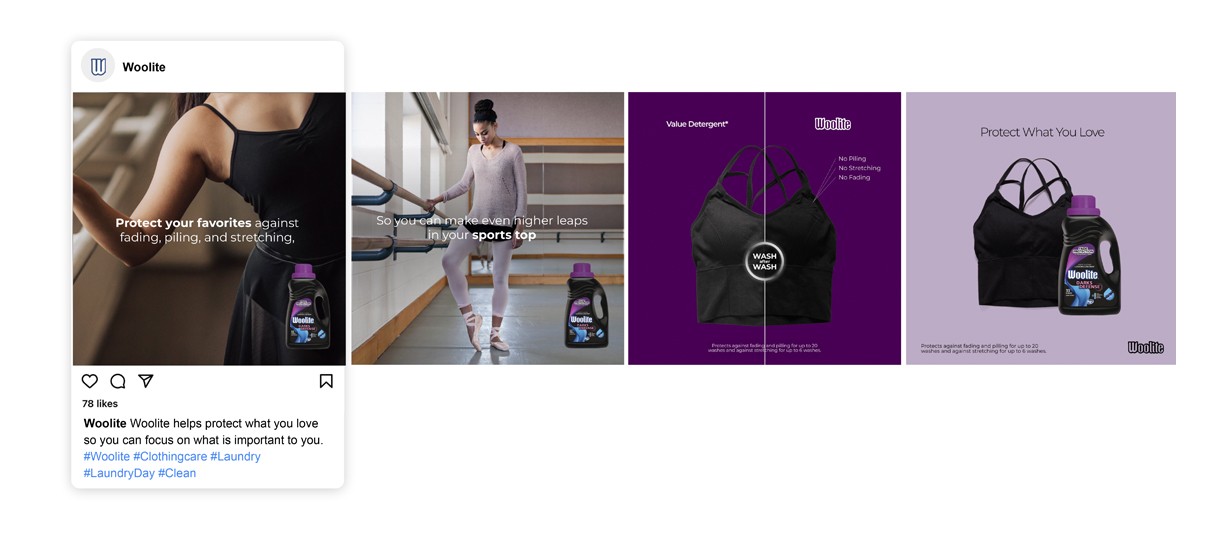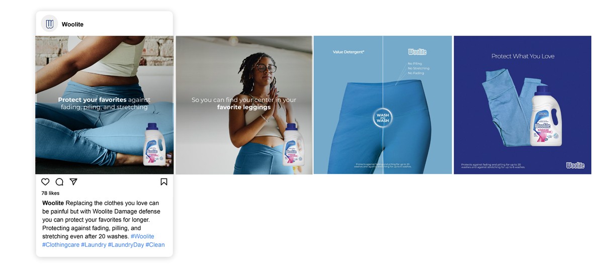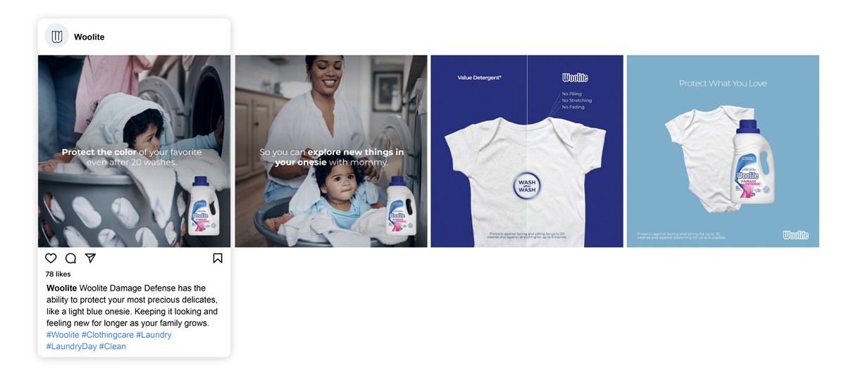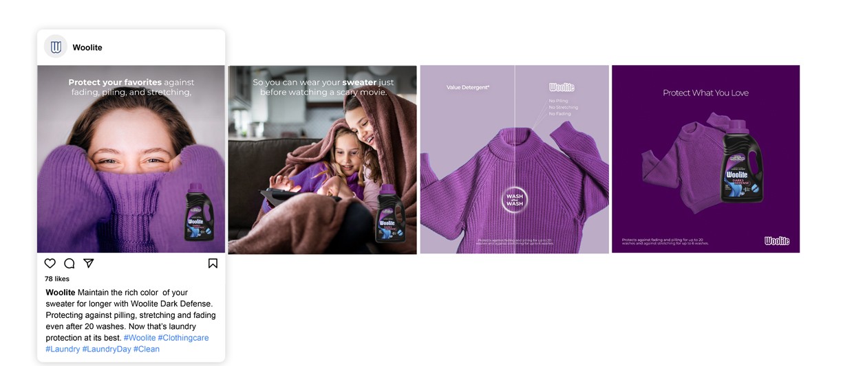 Educating consumers on how to properly take care of their clothes and protect what they love. Creating Product focus for both Woolite Darks Defense and Woolite Damage Defense.