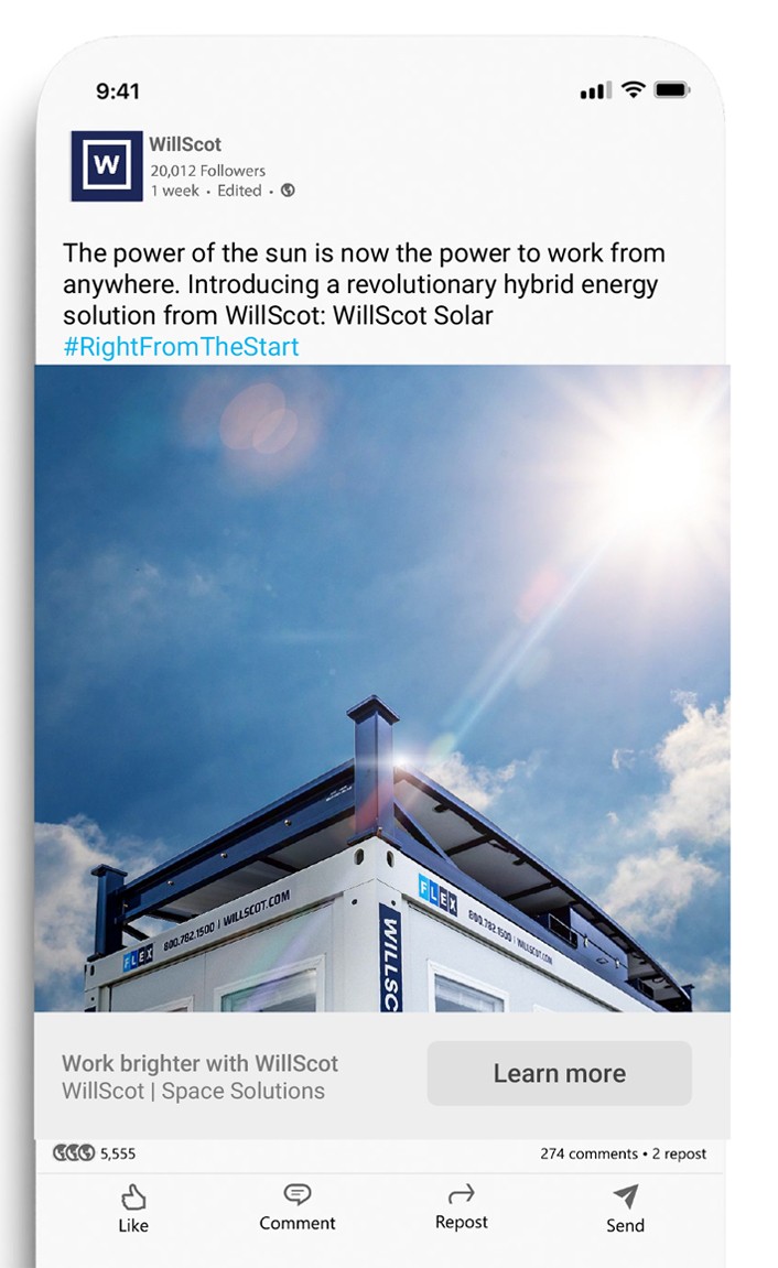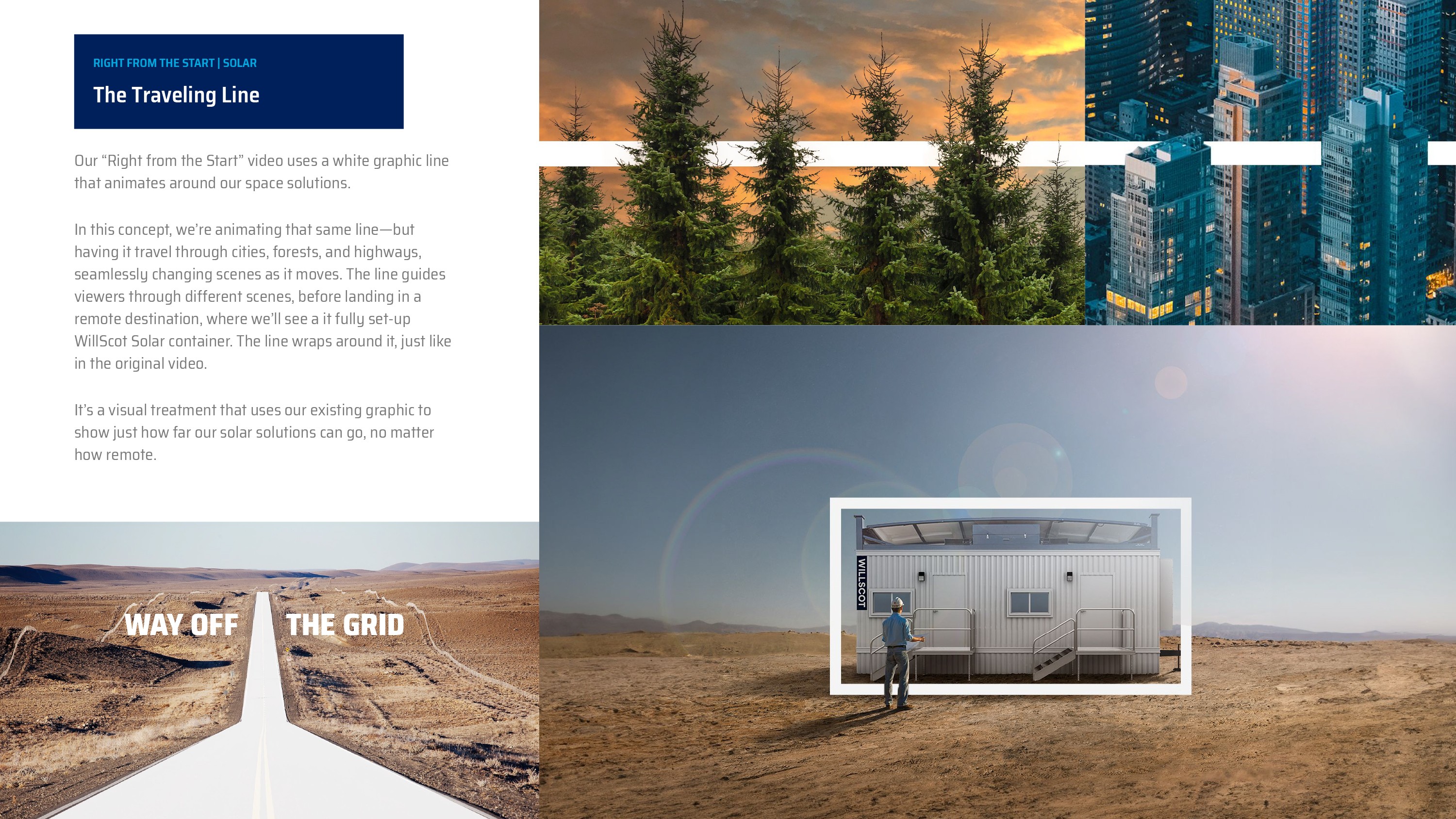 I spearheaded messaging as a copywriter for the omnichannel launch of WillScot’s Solar Solutions, an industry-first flexible power product. My challenge was to position a complex off-grid energy solution as an essential, effortless tool for jobsites with zero infrastructure. Centered on the core truth, "Off the grid, not offline". I crafted a narrative that transformed solar power from a secondary ESG goal into a primary business driver. From high-level brand awareness to lead-gen-focused assets. I developed copy that spoke directly to the needs of professionals requiring immediate, high-performance connectivity in remote spaces. By balancing WillScot’s commitment to innovation with "up and running on day one" practicality, I helped drive brand preference and qualified leads through a unified, "total solution" voice.