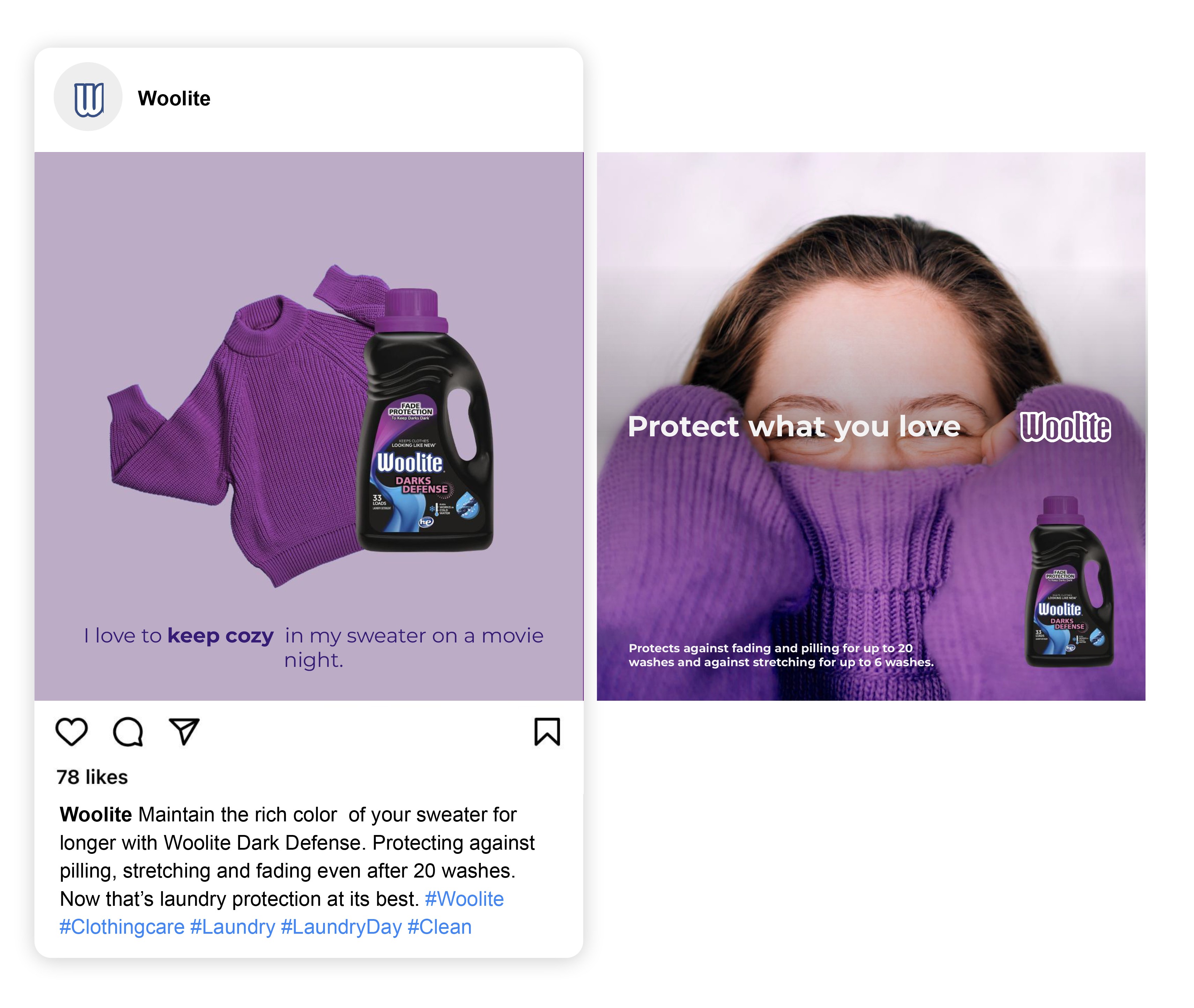 I led the strategic launch of Woolite’s social media presence, transforming a legacy brand with 1% awareness into a fashion-forward authority on garment longevity. Faced with the challenge of a "loyal but aging" demographic, I pivoted the narrative from "laundry detergent" to "wardrobe preservation." By tapping into the deep emotional connection we have with our favorite clothes, I help aid in the development of the "Protect What You Love" philosophy, positioning Woolite’s Darks and Damage Defense as "high fashion’s secret weapon." I constructed a suite of social-first assets, including educational reels and high-aesthetic lifestyle photography, that bridged the gap between scientific formula benefits and sustainable style. My copy balanced technical expertise with a sophisticated, modern voice, successfully introducing a new generation of style-conscious consumers to the concept of making their most cherished pieces last a lifetime.